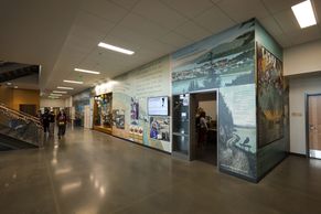 The Arts exploded on the scene in the 1960's and have become a defining value for the town. This wall honors student art and the programs that support them.