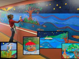 Two thirty foot murals were created for the pediatric floors at Mary Bridge in Tacoma.
